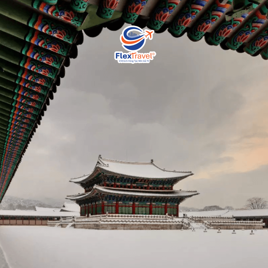 Trưa: Đoàn dùng cơm trưa tại nhà hàng địa phương. Sau đó tiếp tục tham quan: Cung điện Gyeongbokgung hay còn được gọi là Cảnh Phúc Cung. Đây là nơi mà các vị vua thời Joseon đã ở trong suốt thời gian trị vị của mình. Cung điện nằm ngay tại trung tâm thủ đô Seoul hoa lệ, được coi là biểu tượng kiến trúc nổi tiếng nhất của xứ sở kim chi. Với diện tích 400.000m2, Gyeobokgung chính là hiện thân của lịch sử và truyền thống của Hàn Quốc hơn vài thế kỷ qua. Đây là một di tích lịch sử cũng là địa điểm du lịch nổi tiếng thu hút hàng triệu khách du lịch từ khắp nơi thế giới ghé thăm mỗi năm.