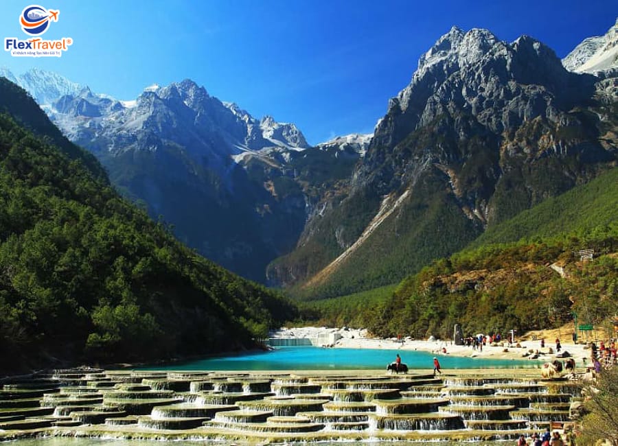 Lam Nguyệt Cốc: Là một thung lũng nằm dưới chân núi tuyết Ngọc Long, trong ánh mặt trời rực rỡ, Lam Nguyệt Cốc hiện lên như một vầng trăng ngọc bích huyền ảo. Thung lũng gồm 4 hồ nước Kính Đàm, Lam Nguyệt, Ngọc Dịch và Thính Đào, quanh năm nước xanh mát, buốt lạnh. (Không bao gồm chi phí đi xe điện)